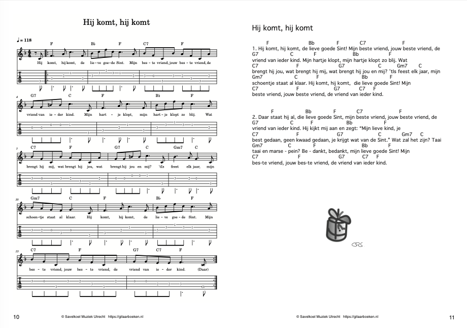 Koop nu snel en makkelijk 23 sinterklaasliedjes, met de moderne teksten, voor de gitaar. Het boek bevat de TAB, notenschrift, akkoorden en complete tekst, met achterin het gitaarboek de akkoorden diagrammen.
